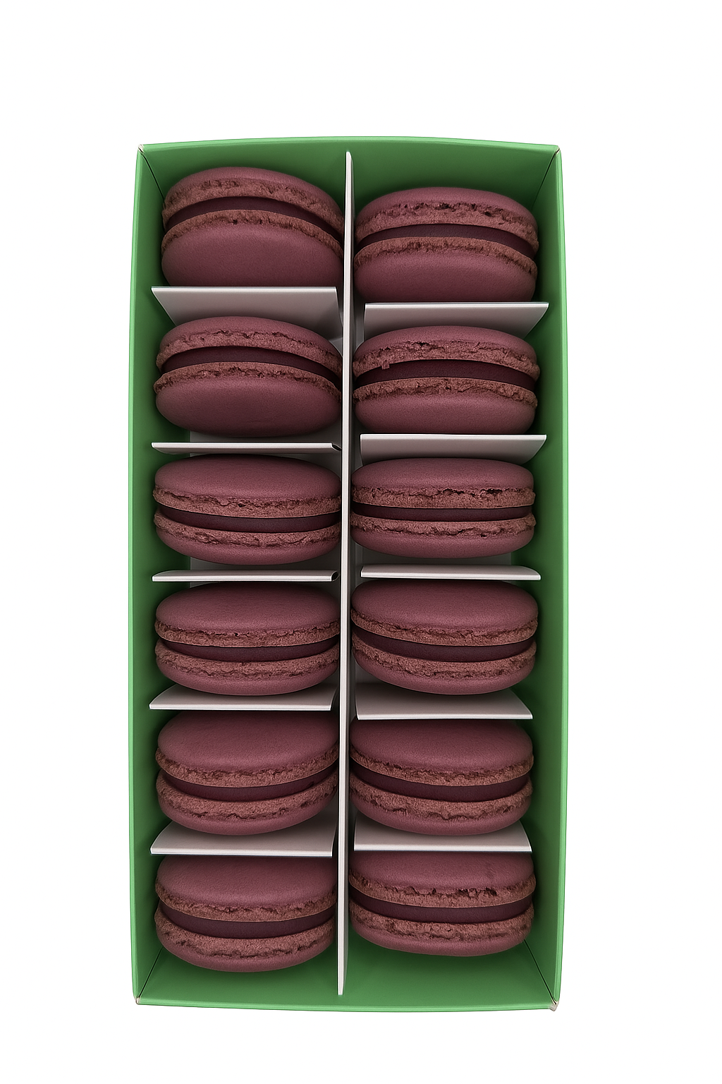 Klasyczny i rozgrzewający. Piernikowy makaronik oddaje istotę korzennych ciasteczek z cynamonem, goździkami i gałką muszkatołową, połączonych z kremem czekoladowym Callebaut.