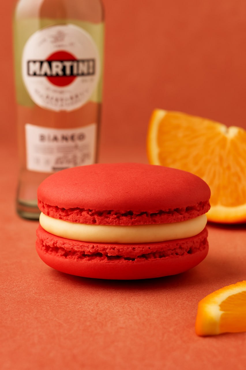 Zainspirowany wyrafinowaniem świata koktajli. Ten makaronik łączy cytrusową pomarańczę z nutą aromatu martini w jedwabistym kremie z białej czekolady Callebaut.