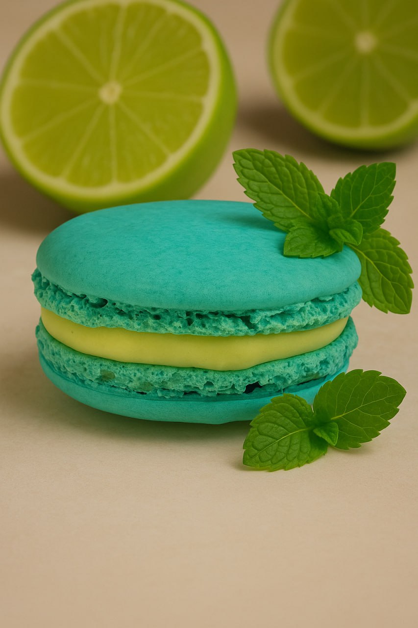 Orzeźwiający twist inspirowany kultowym kubańskim koktajlem. Makaronik Mojito łączy miętę, limonkę i gładki krem z białej czekolady Callebaut – lekki, pikantny i pełen letniej energii.